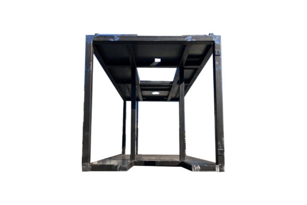 こちらは、板金溶接・製缶加工.COMにて製作いたしました製品でございます。お客様より頂いた図面を基に作成しました設備用架台で、床部には装置関係を配置し、中央部には天井より上部に突き出るほどの高さのある機材が配置されます。天井は通路として歩く為の縞鋼板を張り付けて有ります。架台が大きい為、溶接時に歪みが出ない様に確実に固定して変形を抑える事に注意して溶接しました。